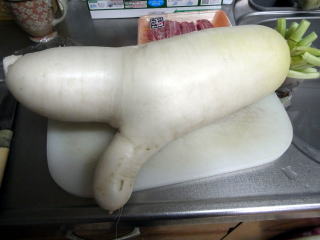お父さんが畑から抜いてきた太くてりっぱな大根