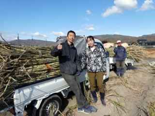 軽トラ二台で、さとうきびを運びます。